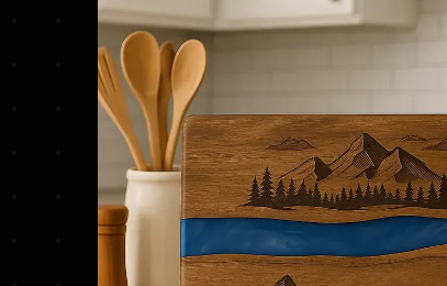 Elegante e funzionale, questo tagliere è realizzato in legno di acacia di alta qualità e impreziosito da una resina blu perlata. Perfetto per affettare, servire e presentare alimenti in modo raffinato e moderno.